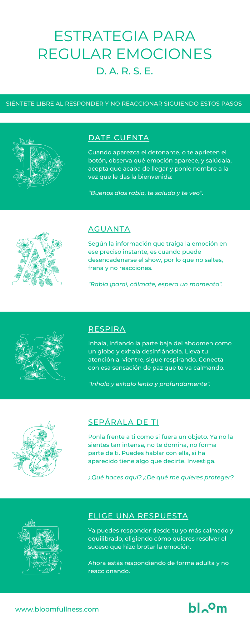 Te presento DARSE, una ESTRATEGIA PARA REGULAR TUS EMOCIONES, con la que sentirte libre al responder en vez de estallar y como consecuencia reaccionar.